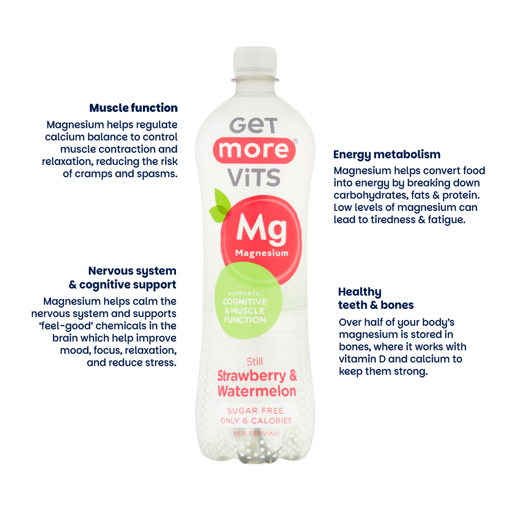 Fruity, refreshing and full of goodness. Our Strawberry & Watermelon Magnesium Water blends natural flavours of softly sweet strawberry with refreshing watermelon, boosted with 50% of your daily dose of Magnesium. Healthy never tasted so good!